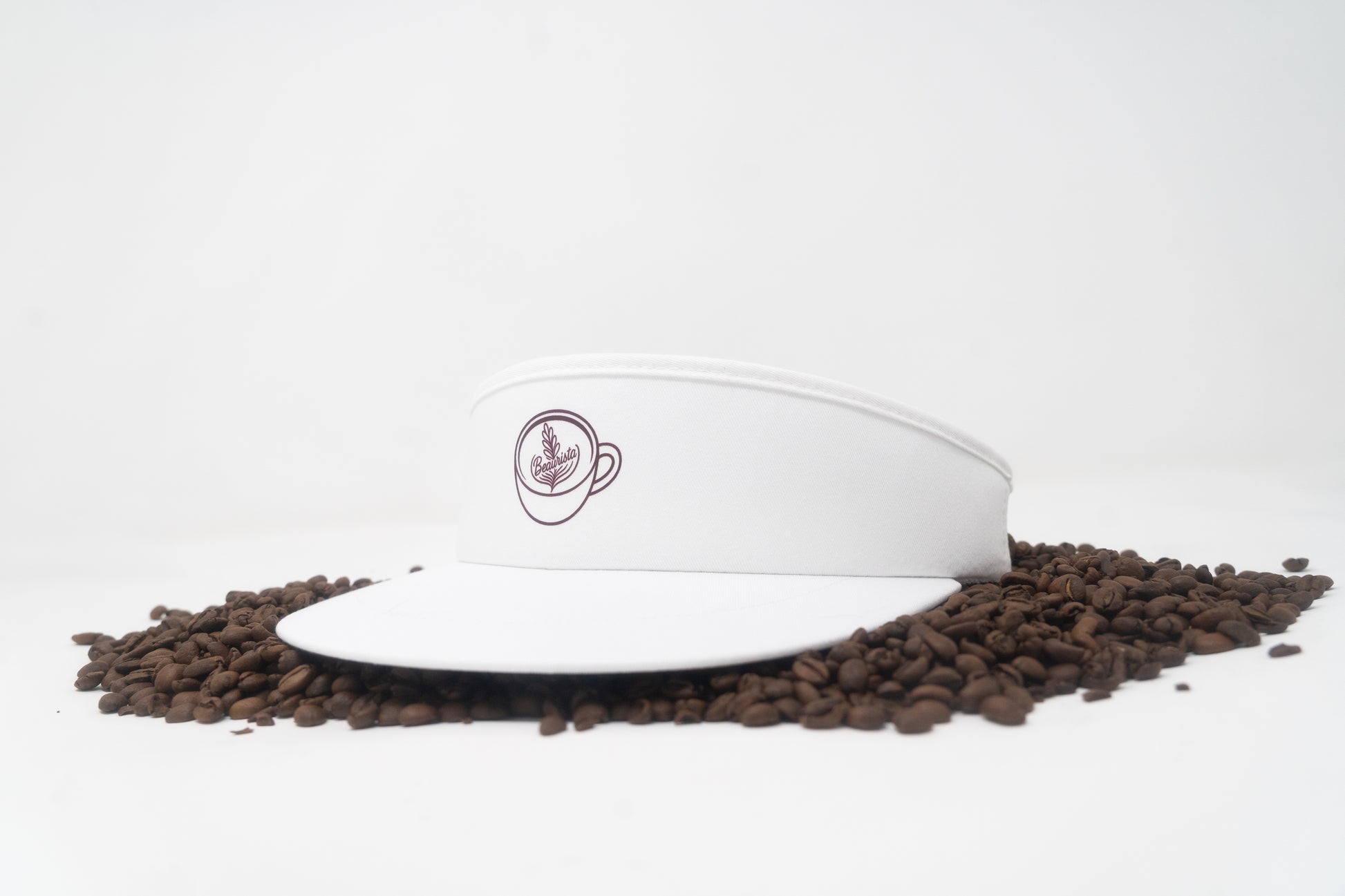 White Visor with Brown Beaurista Mug Logo